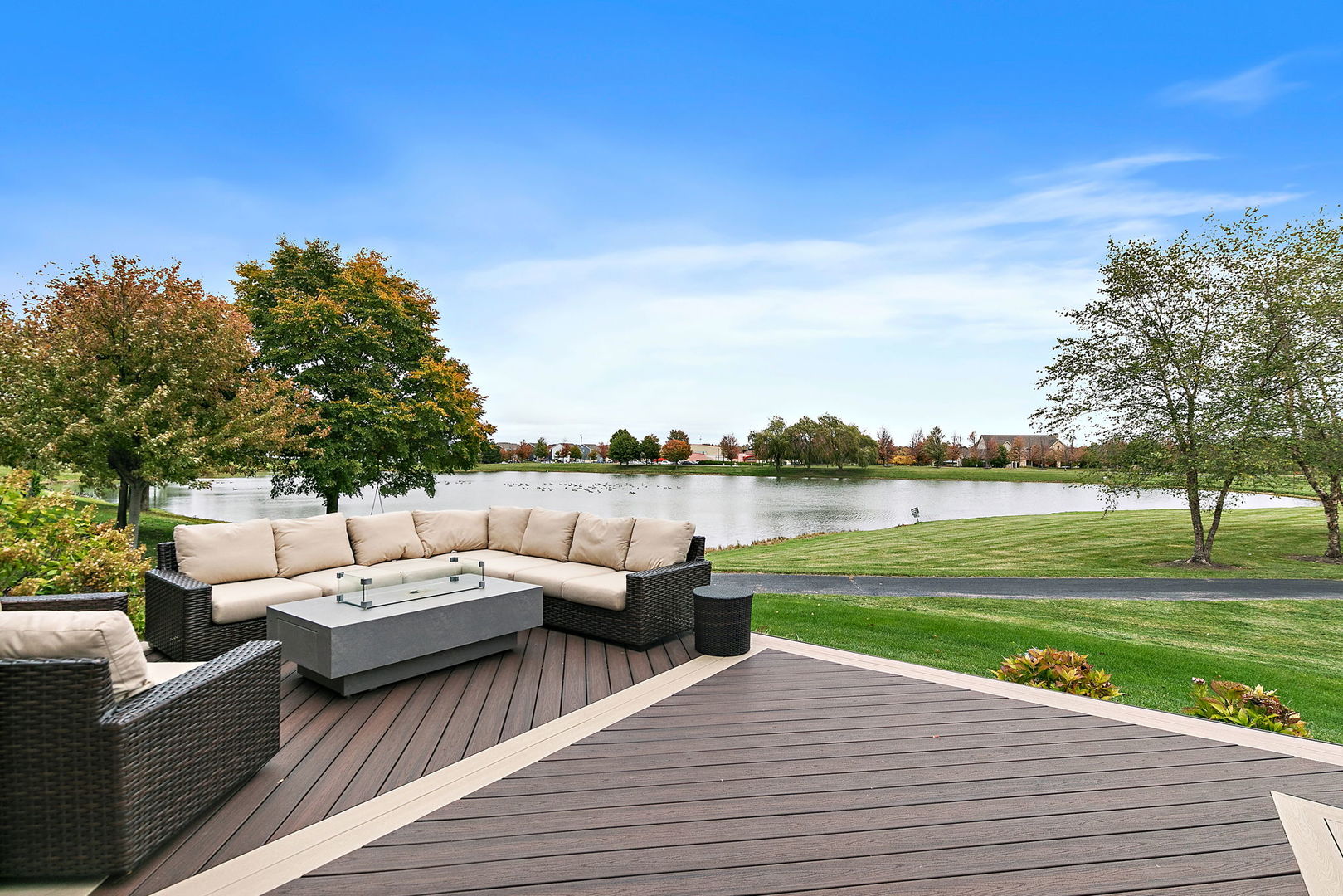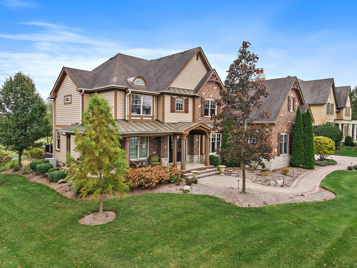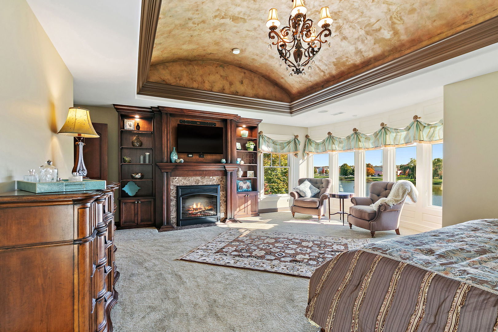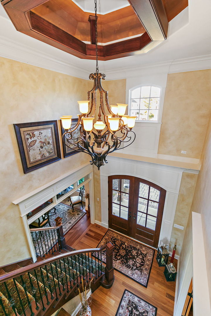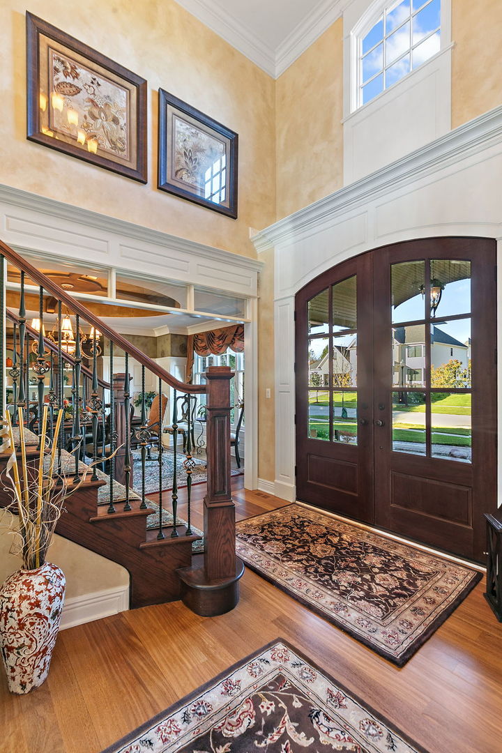 Discover unparalleled luxury in this breathtaking custom-built home by DeMarco, situated in the highly sought-after Highland Woods community on a peaceful pond. The residence is a true masterpiece, showcasing intricate craftsmanship with custom trim throughout that adds a touch of elegance and sophistication. The soaring vaulted ceilings and Venetian plaster accents create an open, airy atmosphere filled with natural light, making every space feel grand and inviting. The expansive master suite is a private retreat overlooking the tranquil pond features a coffee/wet bar station, perfect for relaxing mornings! The enormous bathroom boasts a luxurious soaking tub, a walk-in shower with designer fixtures, and dual vanities-offering both comfort and style. The master closet is a massive, organized space designed to accommodate your wardrobe with ease. The gourmet kitchen is equipped with top-of-the-line appliances, custom cabinetry, and ample counter space, ideal for culinary enthusiasts. The finished basement elevates this home to a new level of entertainment and functionality. It features a stylish large wet bar, a spacious entertainment area, and a state-of-the-art theater room--perfect for movie nights or watching sports with friends. Additional storage options ensure clutter-free living, while the outdoor patio offers stunning views of the pond, creating a serene backdrop for outdoor gatherings or quiet evenings. Every detail in this home has been thoughtfully designed to blend luxury, comfort, and practicality. From the custom finishes to the scenic surroundings, this property truly represents the pinnacle of modern elegance. It's not just a house; it's a lifestyle--an exceptional place to call home.