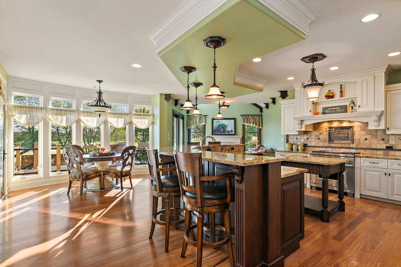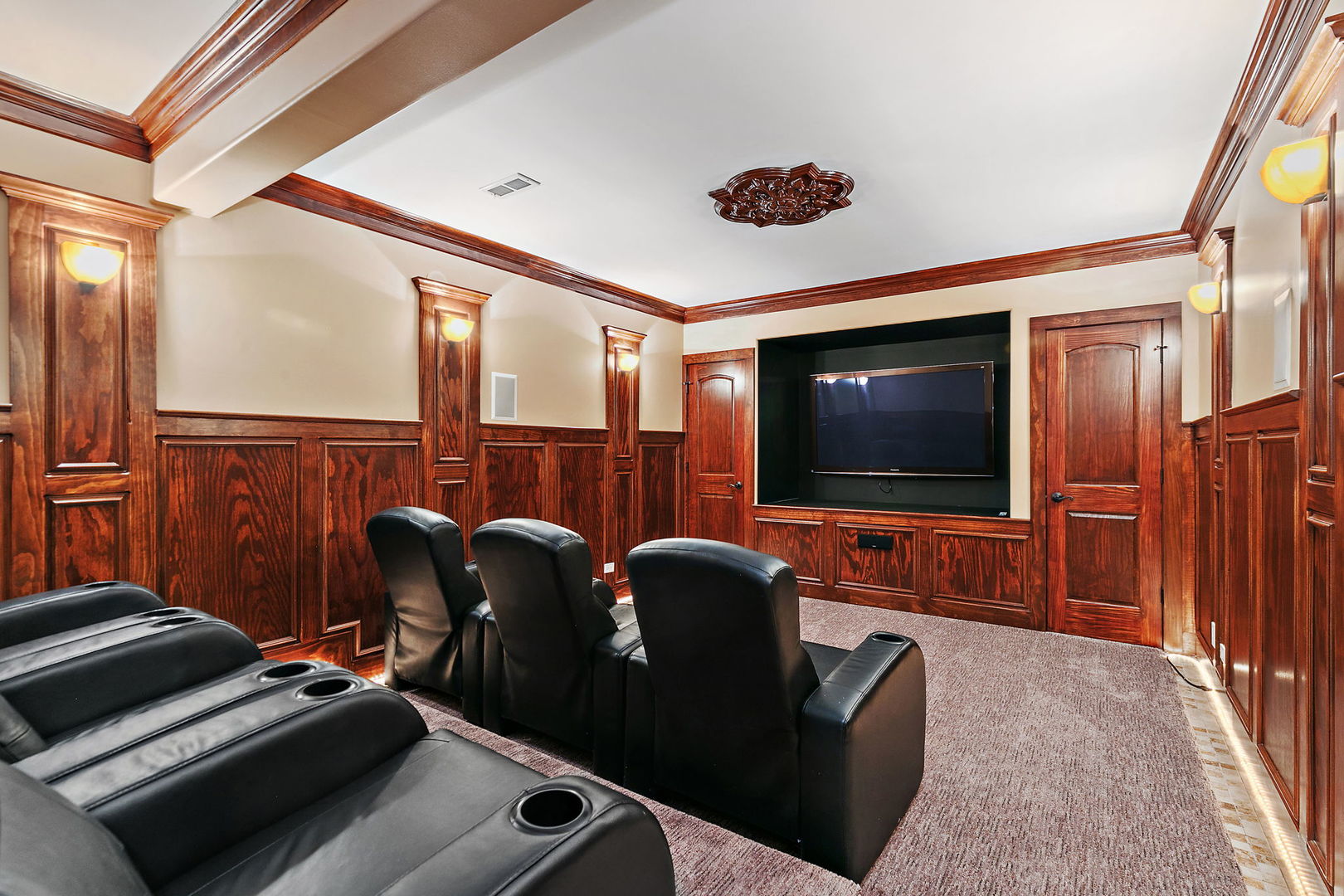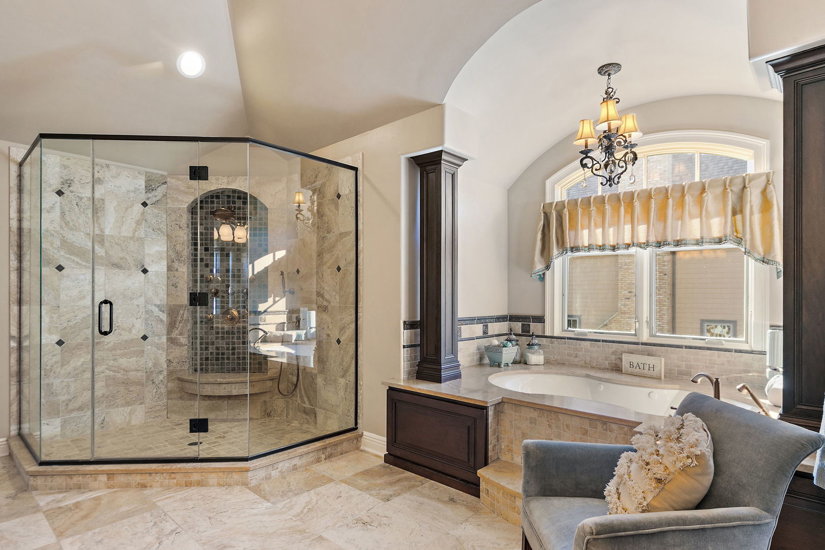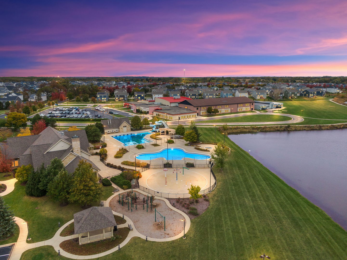 Discover unparalleled luxury in this breathtaking custom-built home by DeMarco, situated in the highly sought-after Highland Woods community on a peaceful pond. The residence is a true masterpiece, showcasing intricate craftsmanship with custom trim throughout that adds a touch of elegance and sophistication. The soaring vaulted ceilings and Venetian plaster accents create an open, airy atmosphere filled with natural light, making every space feel grand and inviting. The expansive master suite is a private retreat overlooking the tranquil pond features a coffee/wet bar station, perfect for relaxing mornings! The enormous bathroom boasts a luxurious soaking tub, a walk-in shower with designer fixtures, and dual vanities-offering both comfort and style. The master closet is a massive, organized space designed to accommodate your wardrobe with ease. The gourmet kitchen is equipped with top-of-the-line appliances, custom cabinetry, and ample counter space, ideal for culinary enthusiasts. The finished basement elevates this home to a new level of entertainment and functionality. It features a stylish large wet bar, a spacious entertainment area, and a state-of-the-art theater room--perfect for movie nights or watching sports with friends. Additional storage options ensure clutter-free living, while the outdoor patio offers stunning views of the pond, creating a serene backdrop for outdoor gatherings or quiet evenings. Every detail in this home has been thoughtfully designed to blend luxury, comfort, and practicality. From the custom finishes to the scenic surroundings, this property truly represents the pinnacle of modern elegance. It's not just a house; it's a lifestyle--an exceptional place to call home.