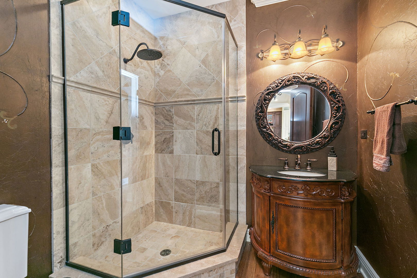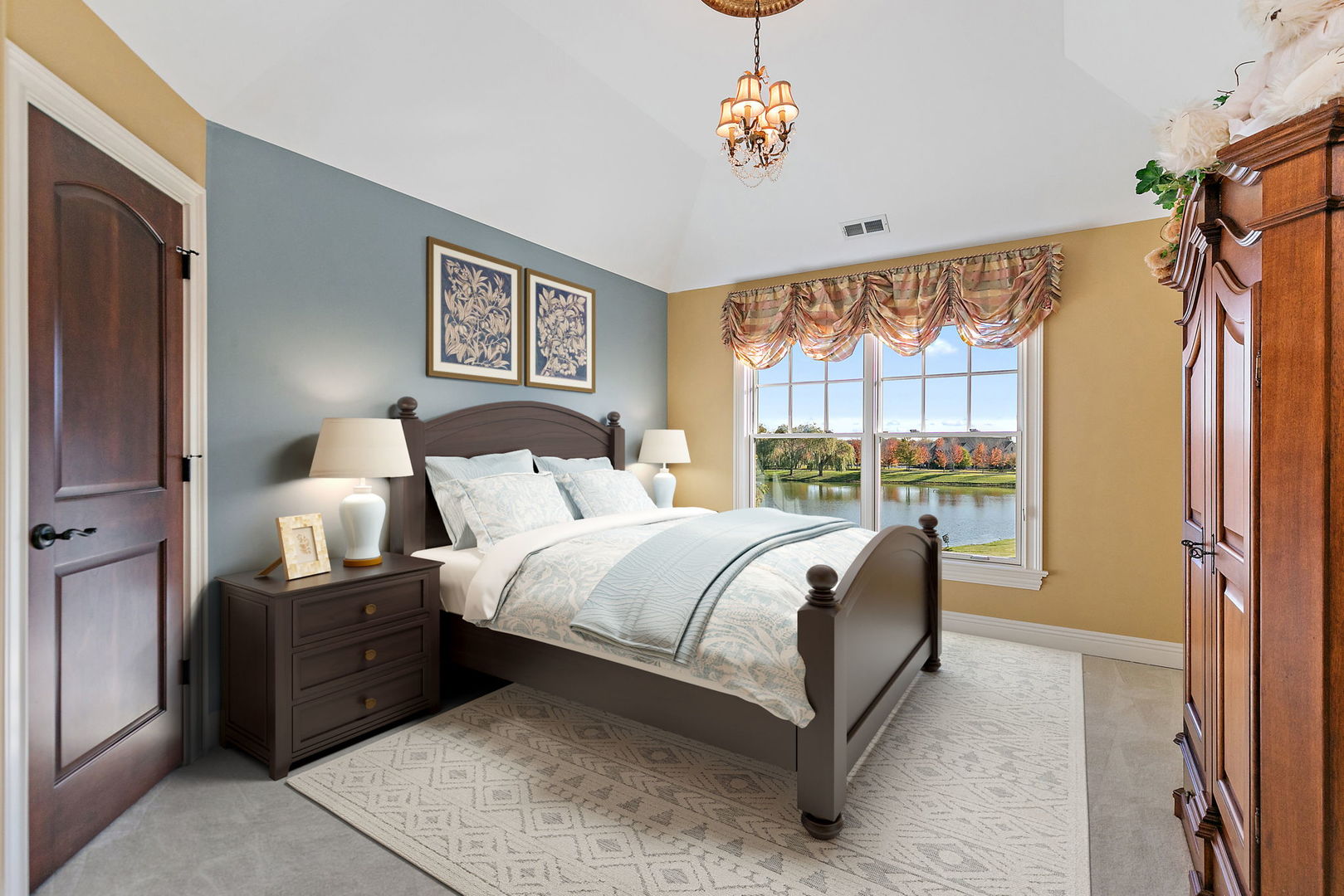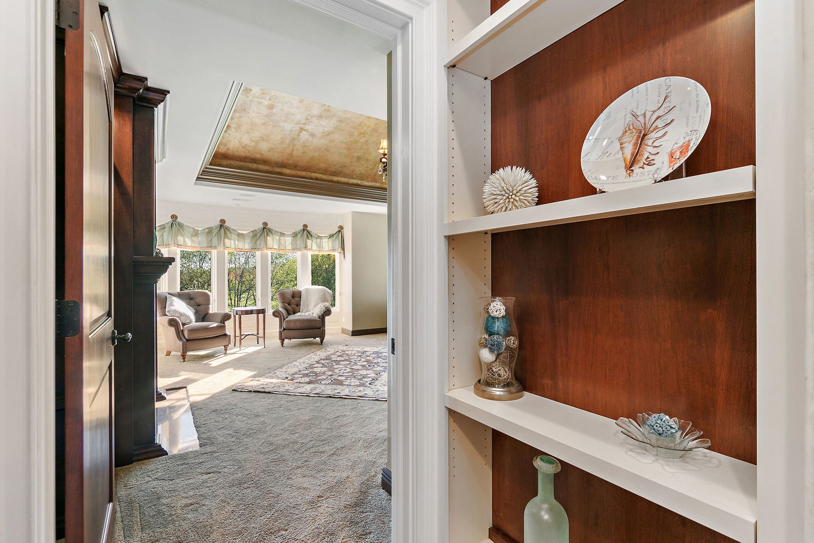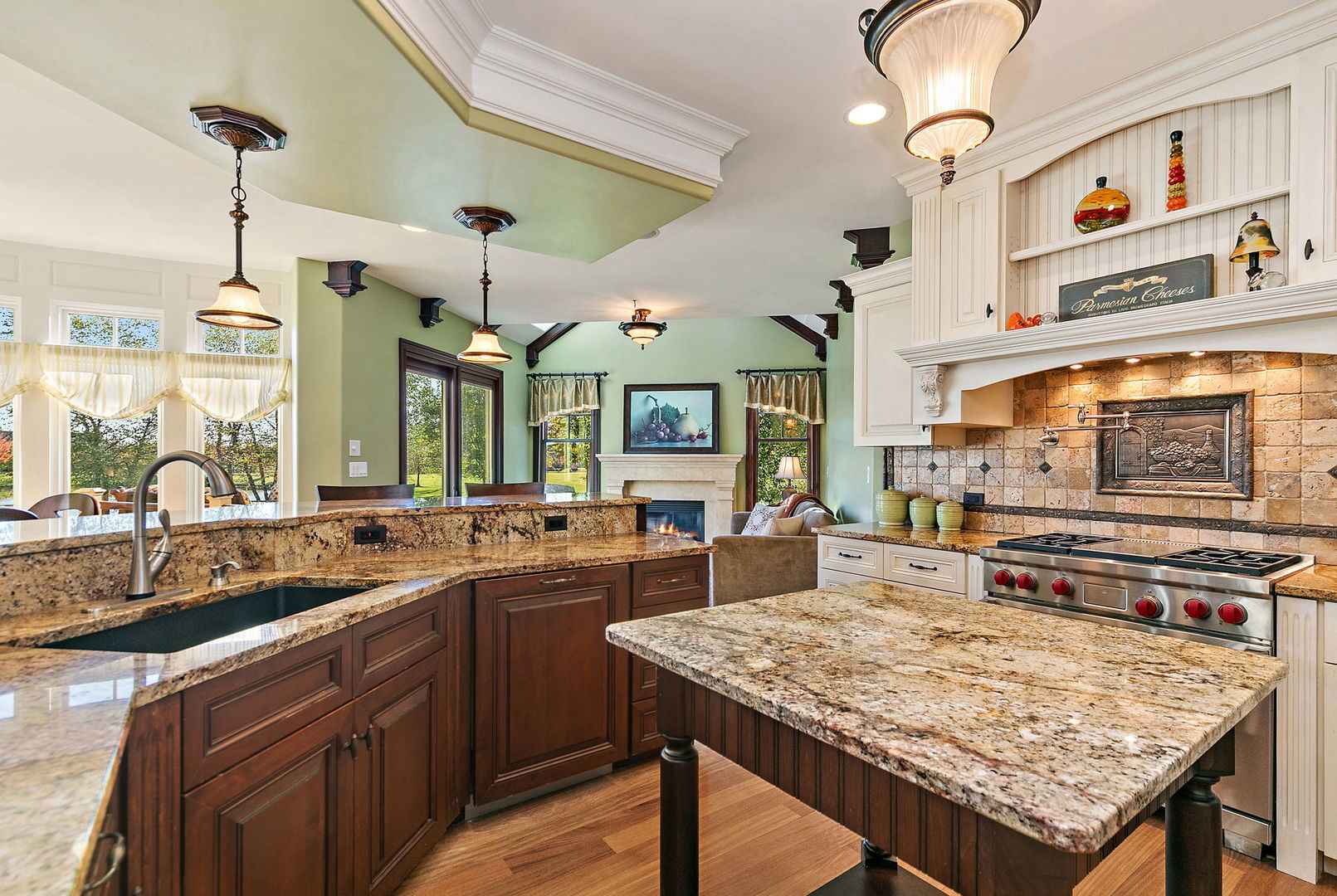 Discover unparalleled luxury in this breathtaking custom-built home by DeMarco, situated in the highly sought-after Highland Woods community on a peaceful pond. The residence is a true masterpiece, showcasing intricate craftsmanship with custom trim throughout that adds a touch of elegance and sophistication. The soaring vaulted ceilings and Venetian plaster accents create an open, airy atmosphere filled with natural light, making every space feel grand and inviting. The expansive master suite is a private retreat overlooking the tranquil pond features a coffee/wet bar station, perfect for relaxing mornings! The enormous bathroom boasts a luxurious soaking tub, a walk-in shower with designer fixtures, and dual vanities-offering both comfort and style. The master closet is a massive, organized space designed to accommodate your wardrobe with ease. The gourmet kitchen is equipped with top-of-the-line appliances, custom cabinetry, and ample counter space, ideal for culinary enthusiasts. The finished basement elevates this home to a new level of entertainment and functionality. It features a stylish large wet bar, a spacious entertainment area, and a state-of-the-art theater room--perfect for movie nights or watching sports with friends. Additional storage options ensure clutter-free living, while the outdoor patio offers stunning views of the pond, creating a serene backdrop for outdoor gatherings or quiet evenings. Every detail in this home has been thoughtfully designed to blend luxury, comfort, and practicality. From the custom finishes to the scenic surroundings, this property truly represents the pinnacle of modern elegance. It's not just a house; it's a lifestyle--an exceptional place to call home.