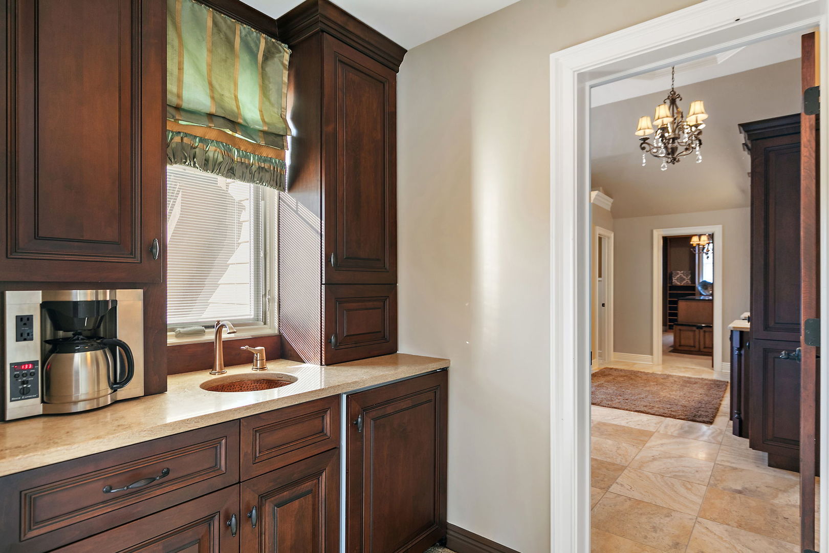 Discover unparalleled luxury in this breathtaking custom-built home by DiMarco, situated in the highly sought-after Highland Woods community on a peaceful pond. The residence is a true masterpiece, showcasing intricate craftsmanship with custom trim throughout that adds a touch of elegance and sophistication. The soaring vaulted ceilings and Venetian plaster accents create an open, airy atmosphere filled with natural light, making every space feel grand and inviting. The expansive master suite is a private retreat overlooking the tranquil pond features a coffee/wet bar station, perfect for relaxing mornings! The enormous bathroom boats a luxurious soaking tub, a walk-in shower with designer fixtures, and dual vanities-offering both comfort a style. The master closet is a massive, organized space designed to accommodate your wardrobe with ease. The gourmet kitchen is equipped with top-of-the-line appliances, custom cabinetry, and ample counter space, ideal for culinary enthusiasts. The finished basement elevates this home to a new level of entertainment and functionality. It features a stylish large wet bar, a spacious entertainment area, and a state-of-the-art theater room--perfect for movie nights or watching sports with friends. Additional storage options ensure clutter-free living, while the outdoor patio offers stunning views of the pond, creating a serene backdrop for outdoor gatherings or quiet evenings. Every detail in this home has been thoughtfully designed to blend luxury, comfort, and practicality. From the custom finishes to the scenic surroundings, this property truly represents the pinnacle of modern elegance. It's not just a house; it's a lifestyle--an exceptional place to call home.