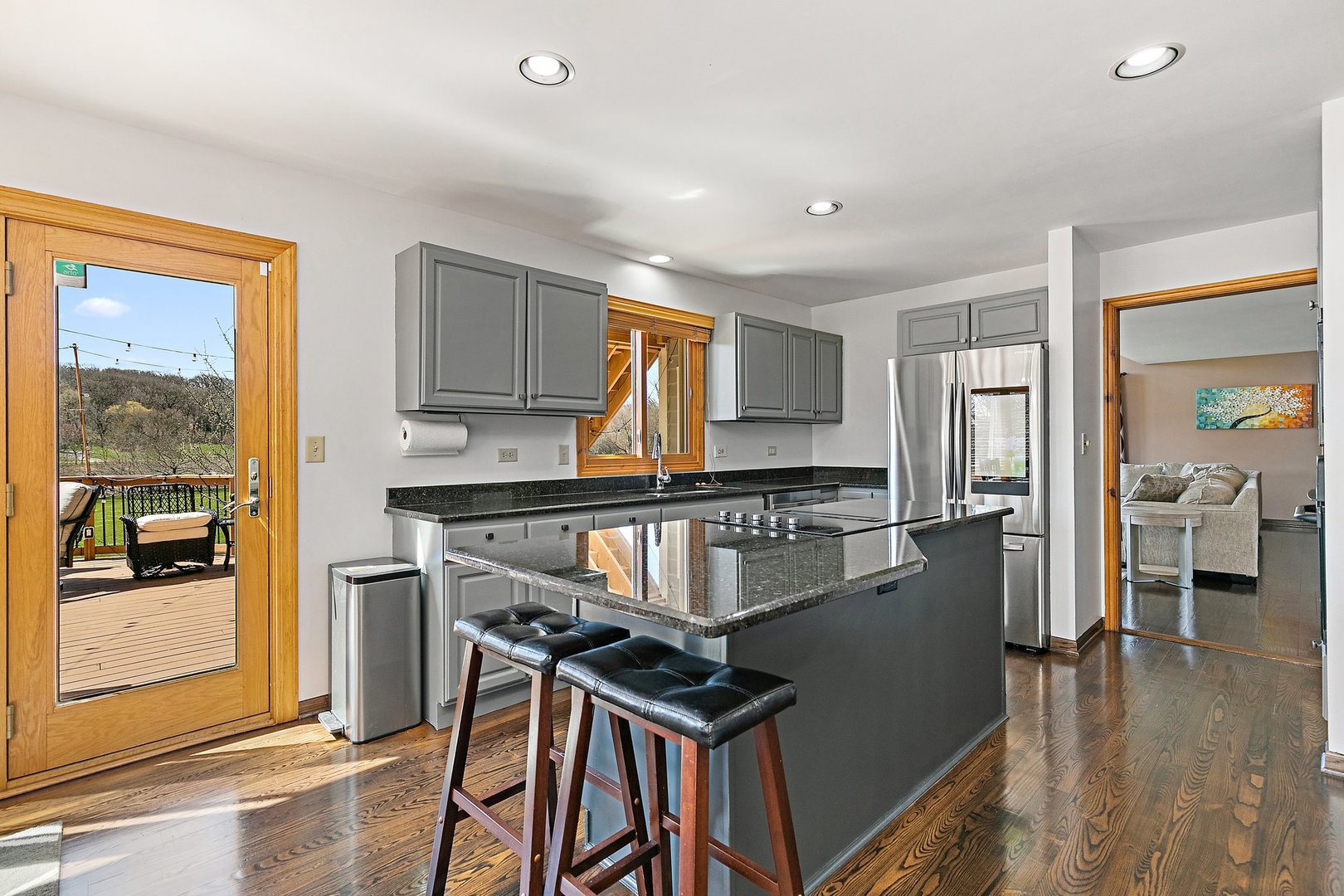 Located in Campton Hills highly sought after La Fox Woods, this spectacular and spacious custom home has it all! Step inside to beautiful wood floors throughout the main level with vaulted ceilings and tons of natural light from the oversized windows. Recently remodeled kitchen features all newer appliances and gorgeous granite countertops with a breakfast area that leads you to the deck that is perfect for entertaining. The second level has 3 freshly carpeted bedrooms including the master which has its own private patio that connects to the main deck along with its own full bathroom, remodeled shower and a walk-in closet. The fully finished walk-out basement could be considered its own in law suite with a living area, full kitchen, 2 bedrooms and also a newly remodeled full washroom and brand new carpeting. Take a step outside to the screened in porch area which is perfect for enjoying the peaceful backyard and nature preserve that lines the back of the property. The backyard is also surrounded with beautiful fruit trees, a vegetable garden and chicken coop! You can't ask for much more in a house! Call this one home today!